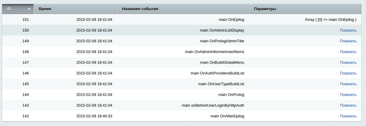 Данный модуль позволяет просмотреть события, происходящие в битриксе, так же посмотреть параметры вызываемых функций